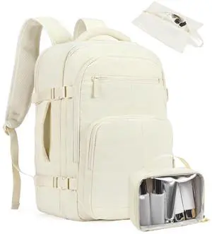 Totoiker Travel Backpack for Women Men Carry on Backpack, Airline Approved Large Travel Bag Flight Approved Personal item, 15.6 Inch Laptop Backpack Casual Daypack for Weekender Business Hiking-WHITE