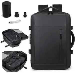 Vacuum-sealed travel computer backpack, Water-Resistant, With vacuum pump, Multiple Compartments, Anti-theft combination lock (Black)