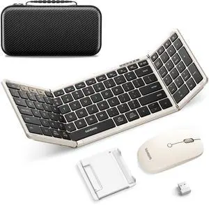 Foldable Keyboard and Mouse, Samsers Folding Bluetooth Keyboard Combo, 2.4G + BT5.0 x 2, Full-Size Portable Travel Keyboard & Rechargeable Wireless Mouse for Windows Android iOS Mac OS, Starlight
