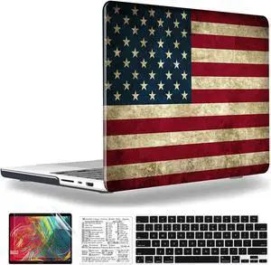 QCzyc Compatible with MacBook Pro 14 Inch Case 2021-2025 M5 M4 M3 M2 M1 A3434 A3185 A3112 A3401 A2992 A2918 A2779 A2442 Hard Plastic Shell &Keyboard Cover& Mac OS Keyboard Sticker (American Flag)