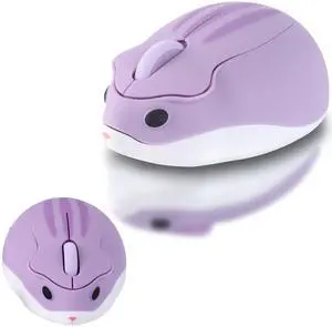 elec Space Cute Animal Hamster Shape Wireless Mouse - Silent, 3-Button Design for Laptop & PC; Includes Random Color Cable Clip - Perfect Computer Mouse(Purple)