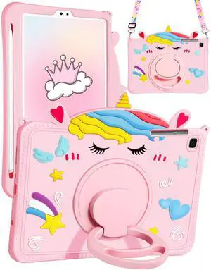 Gurgitat for Galaxy Tab A7 Lite Case - with Pen Holder Cute Cartoon Unicorn Silicone Cover with Rotating Stand & Strap Girly Teens Girls for Samsung Galaxy Tablet A7 Lite 2021 8.7" Cases