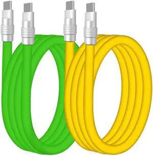chubbycable Couple Chubby - 2-Pack 240W USB C Cable Extra Thick Silicone Fast Charging Cable Compatible with iPhone 16/15 Series iPad Galaxy Series, Green+Yellow, Type-C to Type-C, 9.8FT