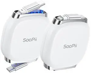 SOOPII USB C to USB C Cable, 240W Retractable USB C Fast Charging Cable with Mag Snap Storage, 5-Stage Length Preset Type C Cable for lPhone 16/15 Pro Max, Galaxy S25/24 White (2Pack 3.3FT)
