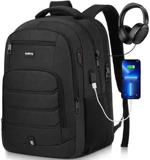 Z-MGKISS Large Travel Backpack, 18.4 Inch Laptop backpack for men, Water Resistant, TSA Flight Approved, Extra large Backpacks, Business Work Bag with USB Charging Port, Black