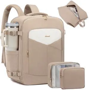 Pritent Travel Backpack for Women Man, Waterproof Personal Item Travel Bag Airline Approved Laptop Backpack Bookbag Weekender bags for Business,Travel, Work Fits 15.6 inch Laptop(Medium,Beige)