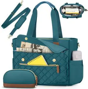 LOVEVOOK Teacher Tote Bag for Women, Work Bags Laptop Bag with Large Cup Holder, Quilted Nurse Bag Diaper Tote with Multi-Pockets, Large Computer Handbag Purse for Bussiness Travel, Office, College