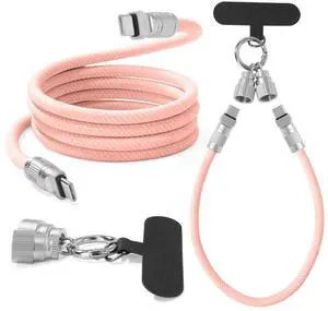 Anqueen Lin USB C to USB C Cable,Phone Lanyard, Pink 1ft and 4ft 2-Pack 60W, Dual-Purpose for Fast Charging Apple iPhone 16/15 Series, MacBook, Samsung Galaxy and More, Phone Strap for All Phones