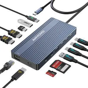 USB C Docking Station, 14 in 1 USB Hub for 3 Monitors, Dual 4K@60Hz HDMI & USB-C Video, 4xUSB-C(10Gbps), 3X USB-A, Ethernet, SD/TF & 3.5mm Audio Jack Multiport Adapter for Laptop/HP/Dell/Lenovo