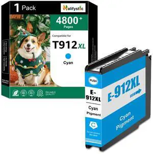 Nalifystic Remanufactured T912XL Ink Cartridges Cyan 1 Pack 912XL Ink Replacements for WF-C8190 WF-C8690 Printer Ink 912XL Value Pack T912XL220