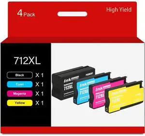 712 712XL High Yield Ink Cartridges 4 Pack Replacement for HP 712 XL for DesignJet T210 T230 T250 T630 T650 Studio Plotter Printers (Black 80ml, Cyan Yellow Magenta 29ml)