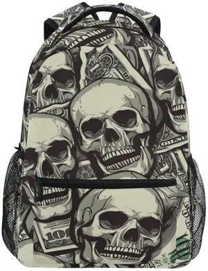Qumton Skull Banknotes Laptop Backpack for Women Men, Personalized College Bookbag Travel Bag Casual Daypack back packs