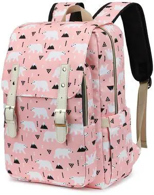 Kouxunt Polar Bear Laptop Backpack for Women Girls, 15.6 inch College School Backpacks Travel Casual Daypack (Pink)