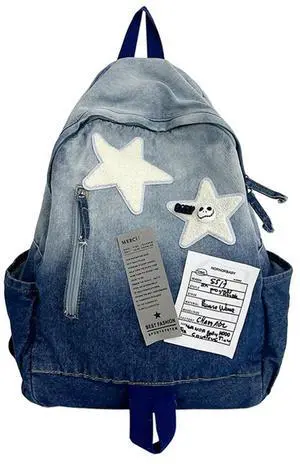 Goylmc Cute Denim Backpack, Double Shoulder Bag, Laptop Backpack for 15.6 with Large Capacity Adjustable Straps (Blue)
