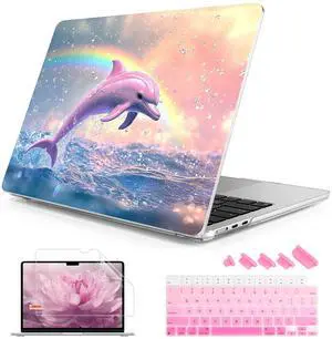 Mektron for 2025-2022 MacBook Air 13.6 inch Case M4 M3 M2Model A3240 A3113 A2681 with Liquid Retina Display Touch IDPrinted Bright Hard Shell Cover for MacBook Air 13.6"Jumping Dolphin