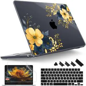 Mektron Compatible with M4 MacBook Air 15 inch Case 2025 A3241 2024 2023 M3 A3114 A2941 M2 Liquid Retina Display Touch ID, Plastic Hard Case & Keyboard Skin & Screen Protector - Floral C348