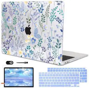 LCMOCICO Compatible with 2021 2020 MacBook Air 13 inch Case M1 A2337 A2179 A1932 2018 2019 Release, Pattern Plastic Hard Shell Case & Keyboard Cover for Mac Air 13 Touch ID, Meadow Wildflower