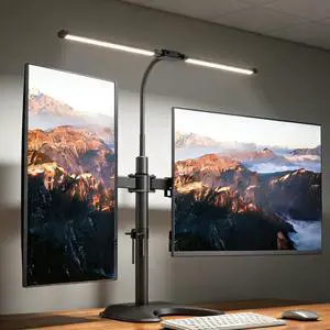 1332 Dual Monitor Stand for Desk with Adjustable LED Desk Lamp, Monitor Stand with Led Lights Free-Standing Monitor Mount (22 lbs/Arm) Two-Screen Ergonomic Mount with Reading Lamp