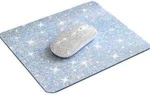 Silver Glitter Mouse Pad & Wireless Mouse Set, Bling Diamond Cordless Mouse with Matching Mousepad 9.57.9 inch, Cute Desk Accessories for Girls, Gift for Office Laptop PC