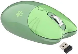 Yoidesu Mouse, BT5.1 2.4GHz Dual Mode Portable Cute Cat Shape Computer Mouse, Silent Click Adjustable DPI Auto Sleep Fashion Portable Mouse for Girl School Office (Green)