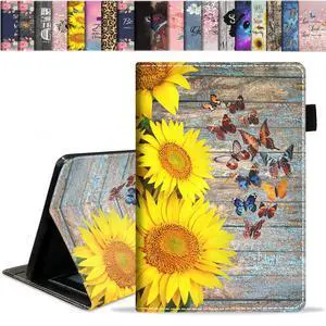 stmedazm Case for All-New Fire HD 10/Fire HD 10 Plus Tablet 10.1" (11th Gen, 2021 Released) - Premium PU Leather Stand Cover with Auto Wake/Sleep - Butterfly and Sunflower