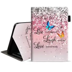ZOXOHO Case for All-New Kindle Fire HD 10 Tablet 10.1 inch (9th/7th Generation, 2019/2017 Release) - Slim Lightweight PU Leather Cover with Auto Sleep Wake, Pink Glitter Quote Live Laugh Love