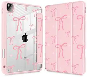 May Chen for iPad Pro 11 inch M2 4th Generation 2022, iPad Pro 11 3rd/2nd/1st Gen, Case with Transparent Shockproof Back Cover [Built-in Pencil Holder, Auto Sleep/Wake, Pink Bows P721