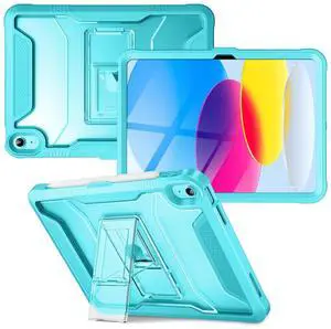 VIKESI for iPad A16 11-inch 2025 and iPad 10th Generation 10.9 Inch Kickstand Protective Case 2022,Shockproof Cover with Matte Frosted Back - Cyan Blue