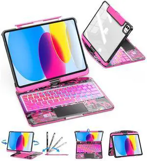 SIBEITU Keyboard Case for iPad A16 11th Gen 11" 2025 & 10th Gen 10.9" 2022, Clear Wireless Keyboard Protective Cover with Multi-Touch Trackpad, 7-Color Backlight & 3-Brightness, 360 Rotatable, Pink