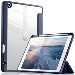 Wenlaty Compatible with iPad 9th /8th /7th Generation Case(2021/2020/2019), Full Body Protective with Pencil Holder, Clear Case Designed for iPad 10.2 Inch, Auto Sleep/Wake Cover, Navy