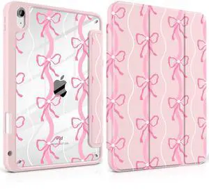 MEEgoodo Case for iPad A16 11th Generation 11 inch 2025/10th Gen 10.9 inch 2022, Cover with Clear Acrylic Back Shell,Tablet Case with Pencil Holder+Auto Wake/Sleep+ Stand, Romantic Bows & Wavy Ribbon