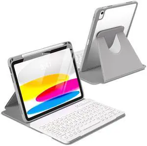 CHESONA for iPad 10th Generation Case with Keyboard, 2 Wireless Channels for iPad (A16) 11th/10th Gen (2025/2022), Backlight, Flip Stand Case with Pencil Holder, Multi-Touch Trackpad, White