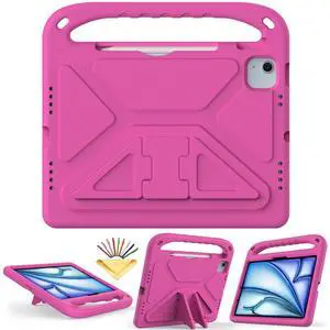 UUcovers Kids Case for iPad Air 11 inch M3 2025/M2 2024 & iPad Pro 11 Inch Case M4 2024 with Pencil Holder/Handle/Kickstand,Slim Stand Lightweight Shockproof Cute Soft EVA Foam Tablet Cover, Rose