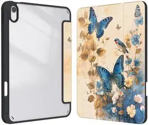 Xkladz Case for iPad (A16) 11th Generation (2025) 11 inch, iPad 10th Generation (2022) 10.9 inch, Case with Pencil Holder, Clear Back Cover Cute Design for Women Girl, Auto Sleep/Wake, Blue Butterfly