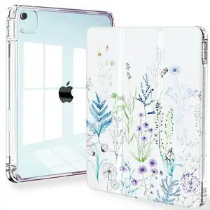 Feams for iPad Air 13 Inch Case M3 2025/M2 2024, Slim iPad Pro 12.9 Inch 6th/5th/4th Generation 2022/2021/2020 Case Clear Back Cover with Auto Sleep & Pencil Holder, Elegant Flowers