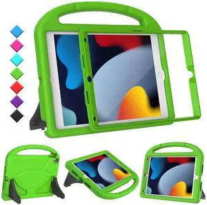 TOEVEK Kids Case for iPad 9th/8th/7th Generation, iPad 10.2 Kids Case with Built-in Screen Protector, Durable Shockproof Handle Stand Protective Cover for iPad 10.2 Inch 2021/2020/2019, Green