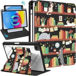 Uppuppy for iPad Air 11 inch Case, Air 5th/4th Generation 10.9, Pro 11'' Case Women Girls for Apple Pencil Holder Cute Cat Rotating Folio Cover for iPad Air 11 2024 (M2), 10.9 2022 2020, Pro 11
