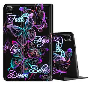Case for iPad Pro 12.9 6th/5th/4th/3rd Generation 2022/2021/2020/2018, Lightweight TPU Shockproof with Auto Sleep/Wake Cover for 12.9 Inch iPad Pro, Pink Purple Butterfly Positive Quotes