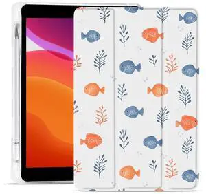 MAYCARI Ocean Sea Marine Life Case for iPad 10.9 inch 2022 with Pencil Holder, Original Pattern iPad 10th Generation Soft TPU Back Protective Cover Shell, Auto Sleep/Wake Slim Shell - Blue Orange Fish