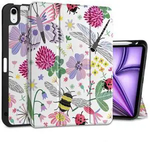 DONGKE for iPad Air 11 Inch Case M3 2025 / M2 2024 & iPad Air 5th 2022 / 4th Generation 2020 10.9 Inch, Ultra Thin Soft TPU Back Cover with Pencil Holder Support Auto Wake/Sleep, Dragonfly