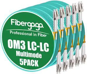 Fibergaga-5Pack 8M(26ft) OM3 LC to LC Fiber Patch Cable, Multimode 50/125m 10G/40G, OD-2.0mm Fiber Optic Cable Duplex LSZH Fiber Jumper