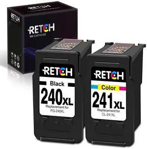 RETCH Re-manufactured Ink Cartridge Replacement for Canon PG-240XL 240 XL CL-241XL 241 XL for Canon PIXMA MG3620 MX472 MX452 MG3220 MG3520 MG2220 MX532 TS5120 MX432 (1 Black 1 Tri-Color)
