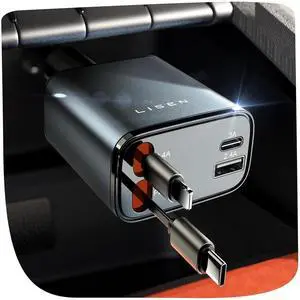 LISEN Retractable Car Charger [69W USB C Car Accessories Adapter ] for iPhone 17 USB C Charger Fast Charging, Travel Essentials Gifts for Women Men, Early Today 2025