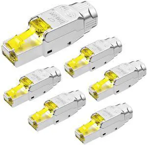 CAT7 Shielded Rj45 Connector Tool-Free 6 PcsEC Listed Field Termination Plug Gold Plated Modular Plug STP Connector Tool Less for Network Cable(CAT7)
