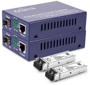A Pair Gigabit Ethernet Media Converter, 10/100/1000Mbps Networks Ethernet to Fiber Media Converter, with 2pcs 1000Base-SX SFP Module (1.25Gb/s, Multimode, Dual LC, 850nm, 550m)