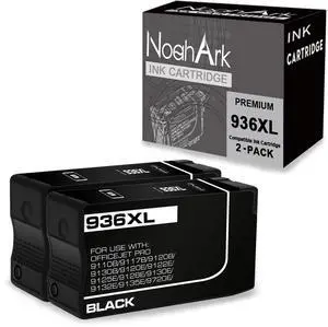 NoahArk 2 Packs 936XL 936 (with Chip) Compatible Ink Cartridges Replacement for HP 936XL 936 for OfficeJet Pro 9110b 9117b 9120b 9130b 9120e 9122e 9125e 9128e 9130e 9132e 9135e 9720e 9730e (2 Black)