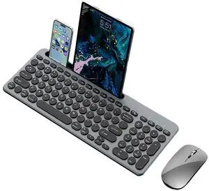 Wireless Keyboard and Mouse Combo with Phone Tablet Holder, Rechargeable Dual-Mode (Bluetooth 5.0 and 3.0 +2.4G) Multi-Device Silent Mouse for Windows, iPad, Tablet, MacOS,iOS,Android (Grey)