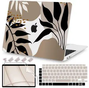 Teryeefi Compatible with 2020 MacBook Air 13 inch Case 2021 2019 Model M1 A2337 A2179 A1932, Clear Hard Shell Case & Keyboard Cover & Screen Protector for Mac Air 13 with Touch ID, Tropical Leaves