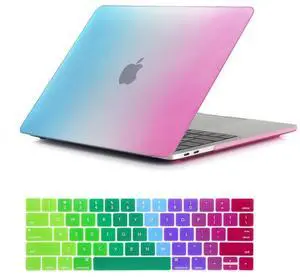 RYGOU Compatible with MacBook Pro 13 inch Case Blue/Pink with Touch Bar 2019 2018 2017 2016 Model:A2159 A1989 A1706, 2 in 1 Bundle Ultra Slim Exquisite Finish Plastic Hard Shell with Keyboard Cover