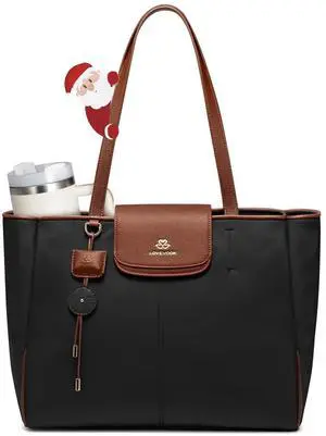 LOVEVOOK Laptop Tote Bag for Women 15.6 Inch, Waterproof Nylon Work Totes with Compartments, Lightweight Professional Computer Briefcase Purse